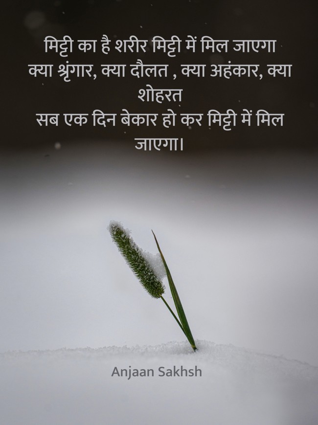 "मिट्टी का है शरीर मिट्टी में मिल जाएगा क्या श्रृंगार, क्या दौलत , क्या अहंकार, क्या शोहरत सब एक दिन बेकार हो कर मिट्टी में मिल जाएगा।"