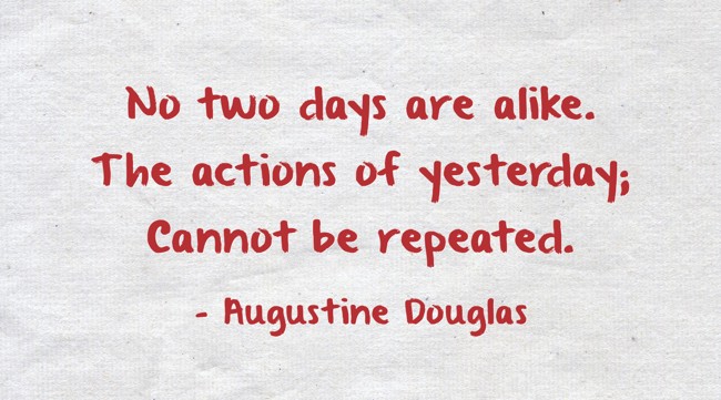 "No two days are alike. The actions of yesterday; Cannot be repeated. "