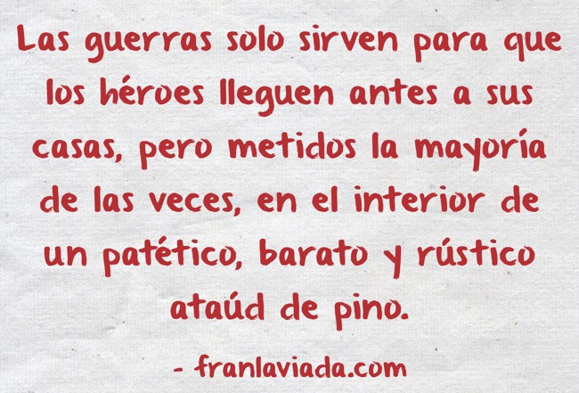 "Las guerras solo sirven para que los héroes lleguen antes a sus casas, pero metidos la mayoría de las veces, en el interior de un patético, barato y rústico ataúd de pino."