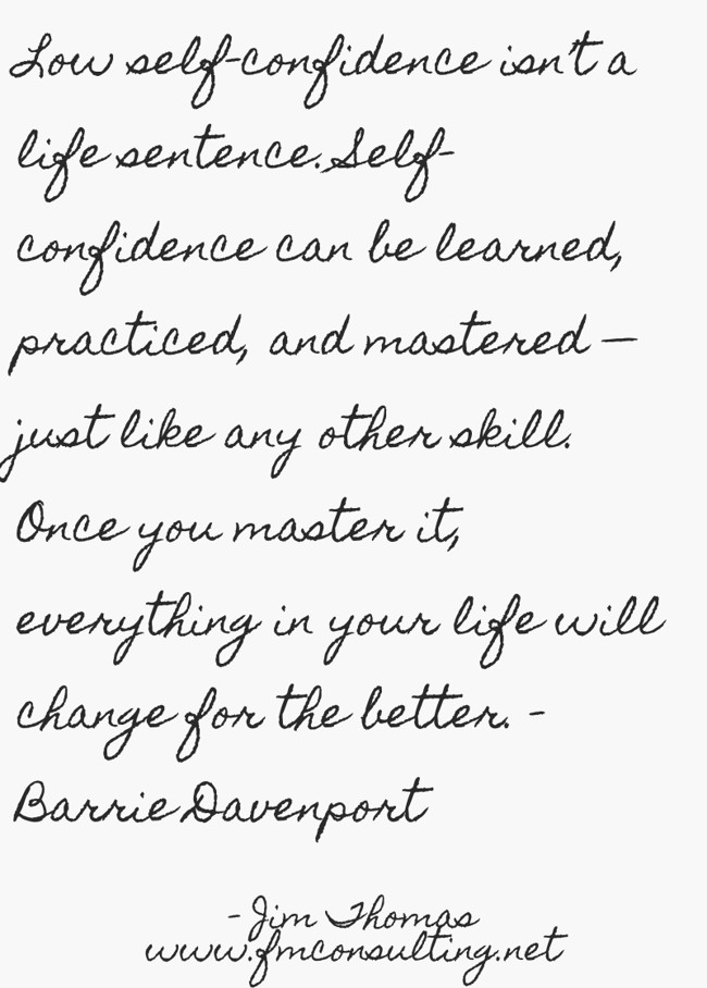 "Low self-confidence isn’t a life sentence. Self-confidence can be learned, practiced, and mastered — just like any other skill. Once you master it, everything in your life will change for the better. - Barrie Davenport"
