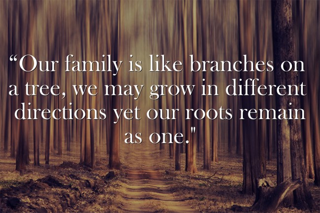 "“Our family is like branches on a tree, we may grow in different directions yet our roots remain as one.""