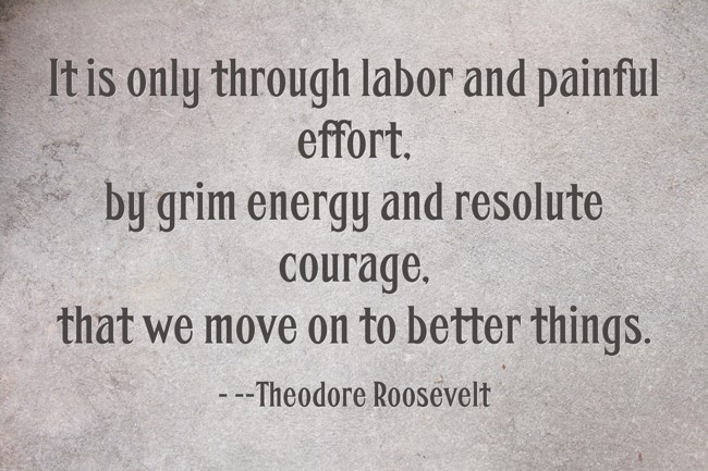 "It is only through labor and painful effort, by grim energy and resolute courage, that we move on to better things."