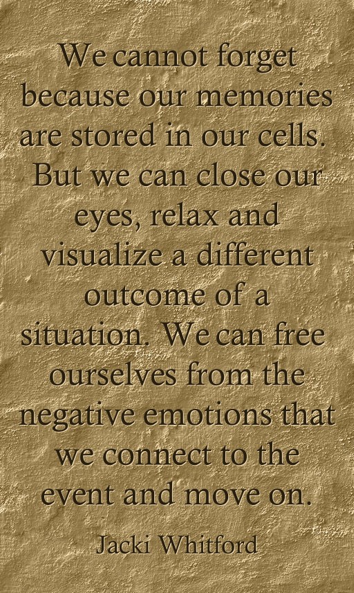 "We cannot forget because our memories are stored in our cells. But we can close our eyes, relax and visualize a different outcome of a situation. We can free ourselves from the negative emotions that we connect to the event and move on."