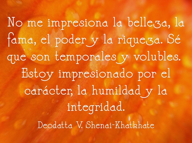"No me impresiona la belleza, la fama, el poder y la riqueza. Sé que son temporales y volubles. Estoy impresionado por el carácter, la humildad y la integridad."