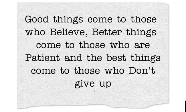 "Good things come to those who Believe, Better things come to those who are Patient and the best things come to those who Don't give up"