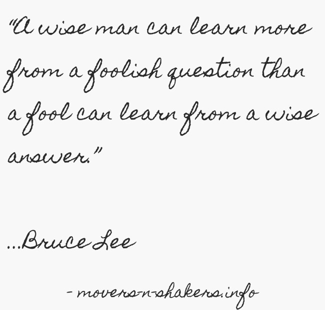 "“A wise man can learn more from a foolish question than a fool can learn from a wise answer.” ...Bruce Lee"