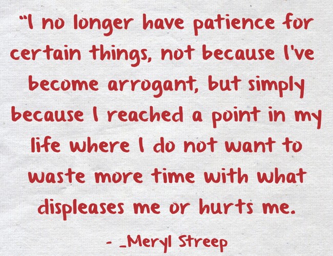 "“I no longer have patience for certain things, not because I’ve become arrogant, but simply because I reached a point in my life where I do not want to waste more time with what displeases me or hurts me."
