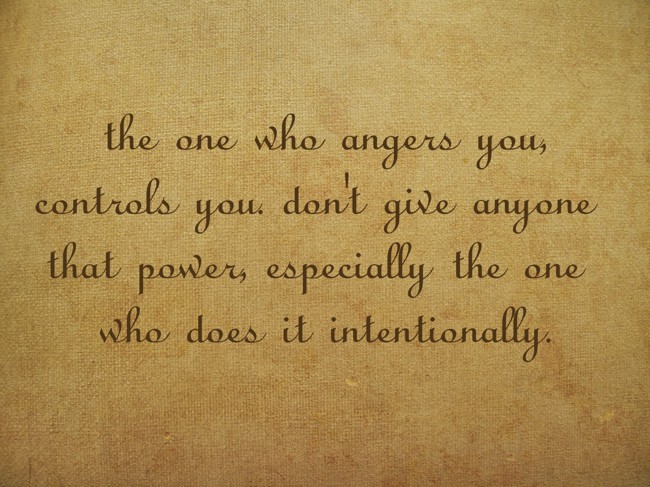 "the one who angers you, controls you. don't give anyone that power, especially the one who does it intentionally."