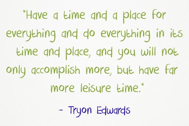 "“Have a time and a place for everything and do everything in its time and place, and you will not only accomplish more, but have far more leisure time.” "