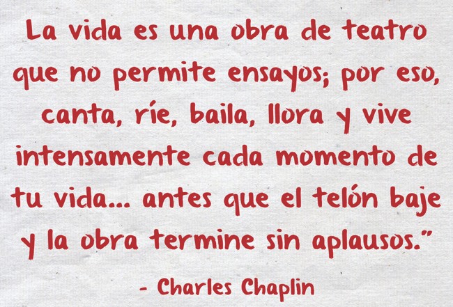 "La vida es una obra de teatro que no permite ensayos; por eso, canta, ríe, baila, llora y vive intensamente cada momento de tu vida... antes que el telón baje y la obra termine sin aplausos." "