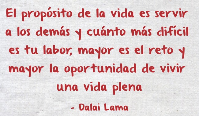 "El propósito de la vida es servir a los demás y cuánto más difícil es tu labor, mayor es el reto y mayor la oportunidad de vivir una vida plena"