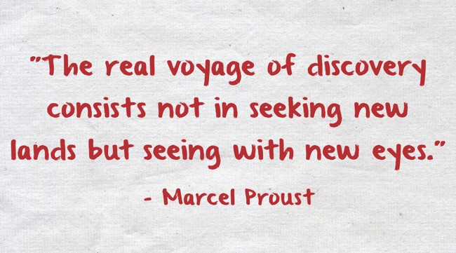 ""The real voyage of discovery consists not in seeking new lands but seeing with new eyes.""