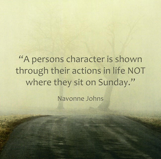 "“A persons character is shown through their actions in life NOT where they sit on Sunday.” "