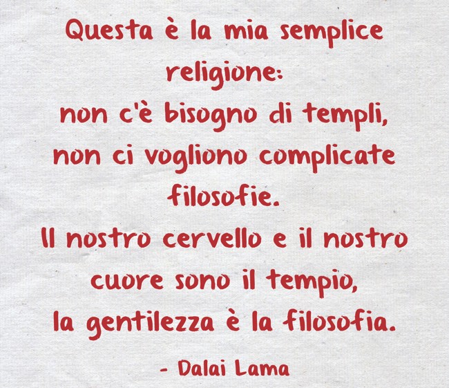 "Questa è la mia semplice religione: non c’è bisogno di templi, non ci vogliono complicate filosofie. Il nostro cervello e il nostro cuore sono il tempio, la gentilezza è la filosofia. "