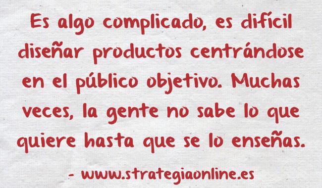 "Es algo complicado, es difícil diseñar productos centrándose en el público objetivo. Muchas veces, la gente no sabe lo que quiere hasta que se lo enseñas."