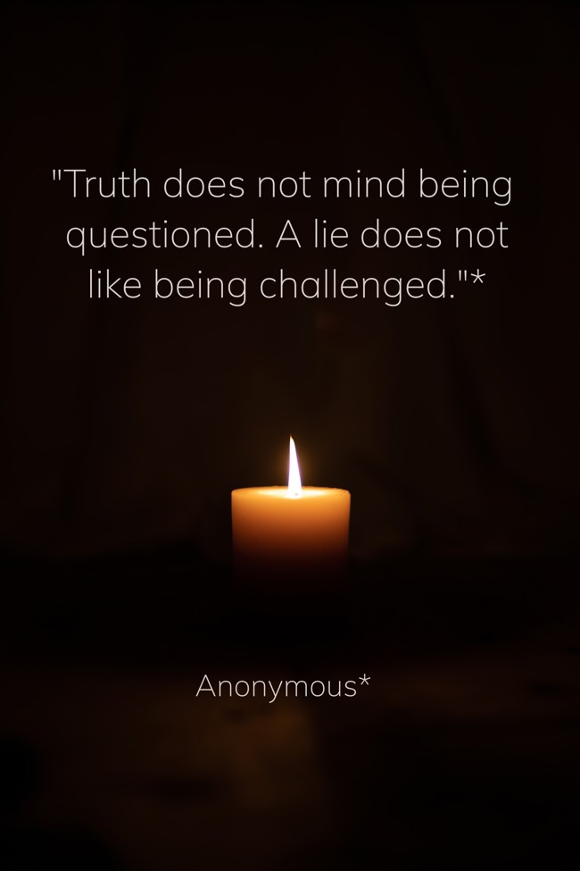 ""Truth does not mind being questioned. A lie does not like being challenged."*"