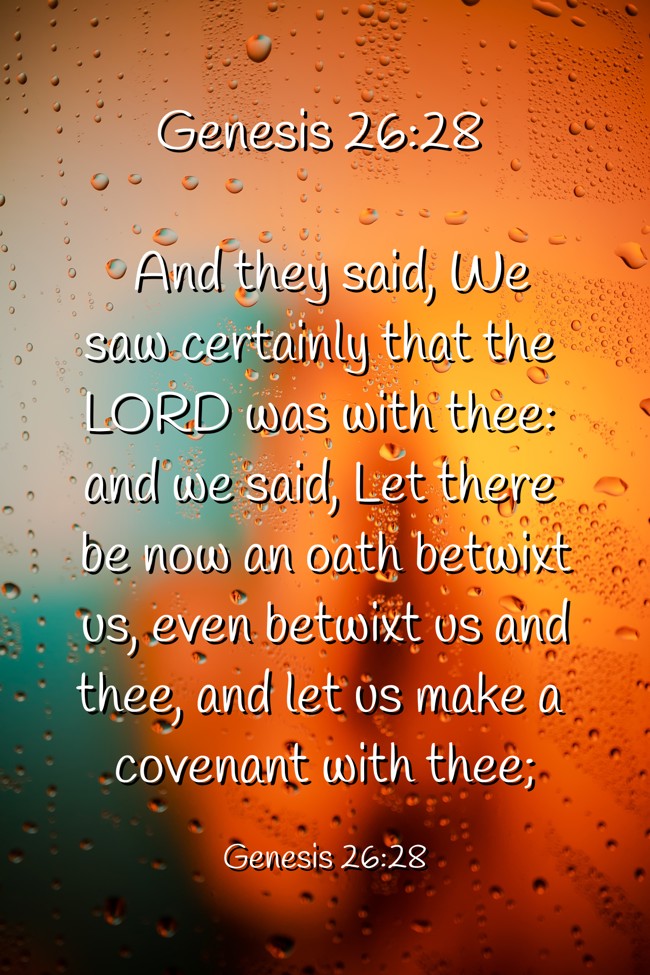 "Genesis 26:28 And they said, We saw certainly that the LORD was with thee: and we said, Let there be now an oath betwixt us, even betwixt us and thee, and let us make a covenant with thee;"