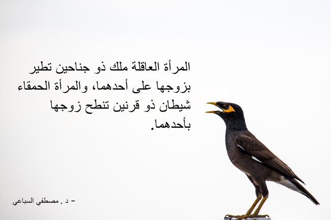 "المرأة العاقلة ملك ذو جناحين تطير بزوجها على أحدهما، والمرأة الحمقاء شيطان ذو قرنين تنطح زوجها بأحدهما."