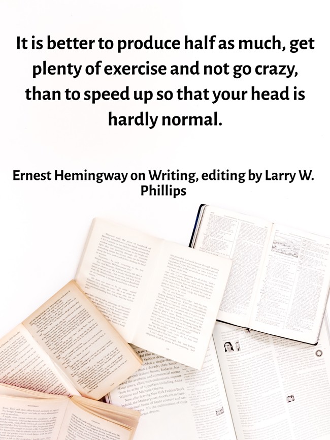 "It is better to produce half as much, get plenty of exercise and not go crazy, than to speed up so that your head is hardly normal."
