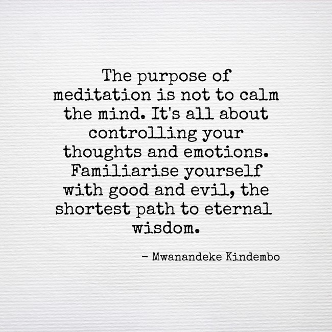 "The purpose of meditation is not to calm the mind. It's all about controlling your thoughts and emotions. Familiarise yourself with good and evil, the shortest path to eternal wisdom."