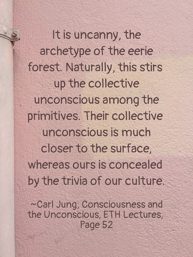"It is uncanny, the archetype of the eerie forest. Naturally, this stirs up the collective unconscious among the primitives. Their collective unconscious is much closer to the surface, whereas ours is concealed by the trivia of our culture."
