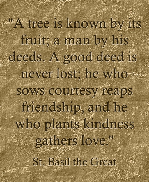 ""A tree is known by its fruit; a man by his deeds. A good deed is never lost; he who sows courtesy reaps friendship, and he who plants kindness gathers love.""