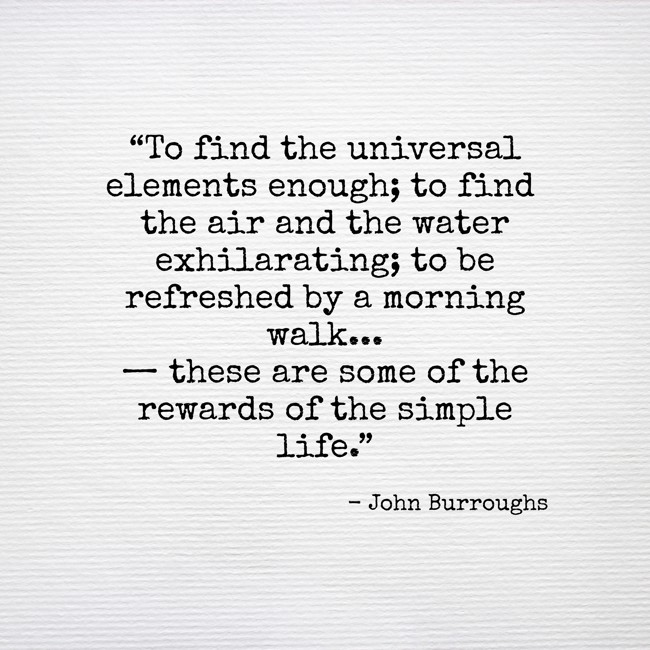 "“To find the universal elements enough; to find the air and the water exhilarating; to be refreshed by a morning walk... — these are some of the rewards of the simple life.”"
