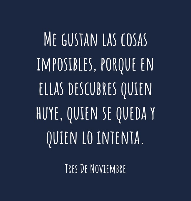 "Me gustan las cosas imposibles, porque en ellas descubres quien huye, quien se queda y quien lo intenta."