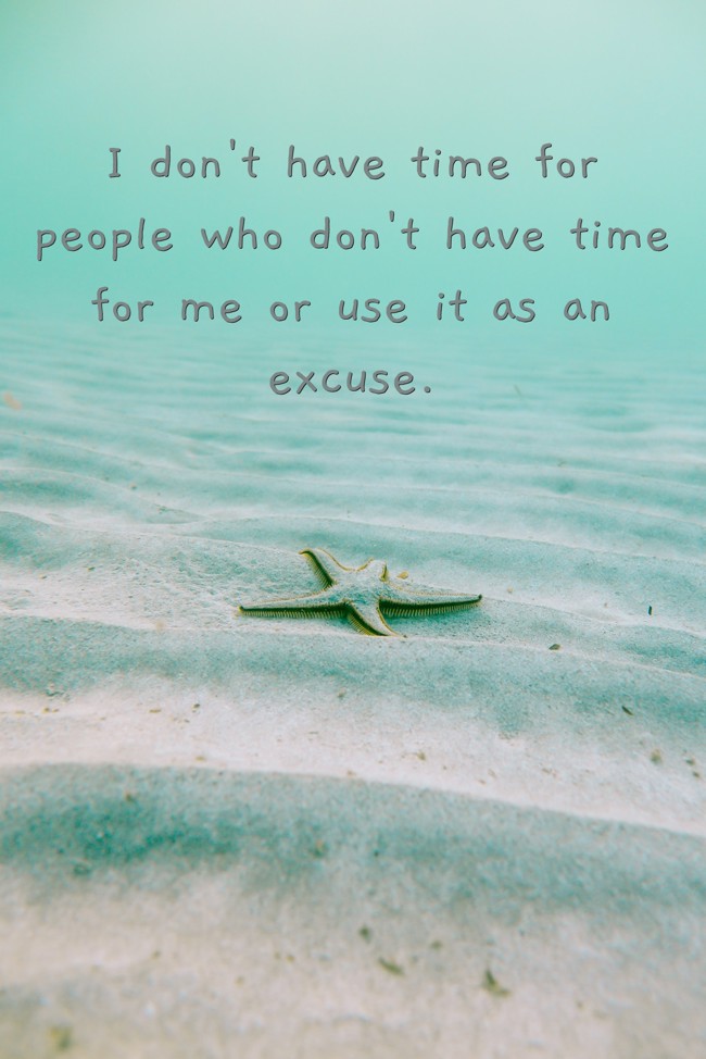 "I don't have time for people who don't have time for me or use it as an excuse."