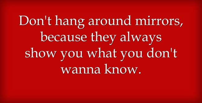 "Don't hang around mirrors, because they always show you what you don't wanna know."